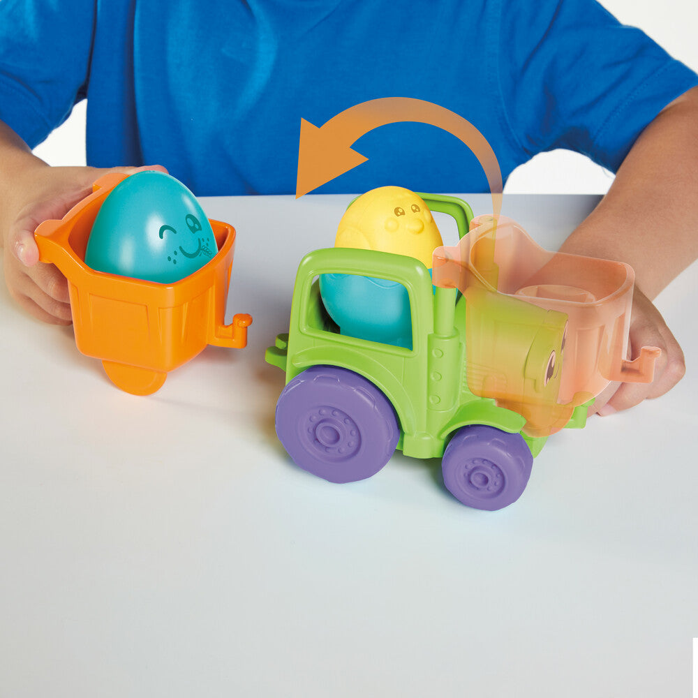 The Tomy Toomies 2-in-1 Transforming Tractor engages children's imaginations and helps develop gross motor skills. With truck and tractor mode, kids can assist in construction...